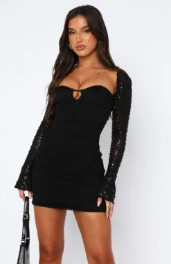 Cancel Your Plans Long Sleeve Mini Dress Black