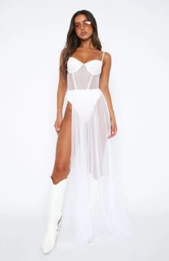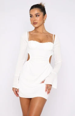 The Please Hold Long Sleeve Mini Dress in White deserves a night out. Featuring thin adjustable straps, long sleeves, cut-out midriff detail, bust underwire, backless design, zipper centre back and lined fabric. Pair with perspex heels and a cute mini bag and you are ready to hit the town with the girls!