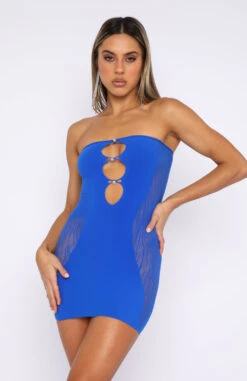 Be best dressed in the Pretty Girl Mini Dress Baby in Blue Poppy. Featuring short sleeves, plunge neckline, bow charm centre front, invisible side zipper, and lined, mesh fabric. We love this paired with gold accessories and platform slides for a dreamy look!